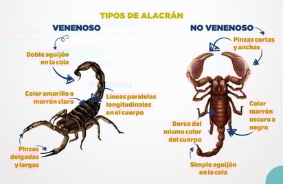 Además, de acuerdo a información de la UNAM, al sur de la entidad también está presente el Centuroides infamatus, que también es venenoso, por lo que en el caso de Durango, hay que cuidarse de todas las especies de alacranes.