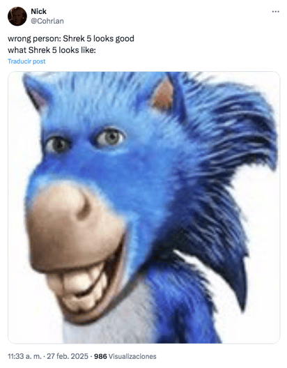 Tras la publicación del primer avance, la plataforma de X no hizo esperar los memes, pues rápidamente usuarios inundaron de burlas los comentarios de la publicación, destacando que “los nuevos diseños de Shrek 5 recuerdan demasiado a las imágenes generadas con la IA que ponen personajes que nada que ver”.