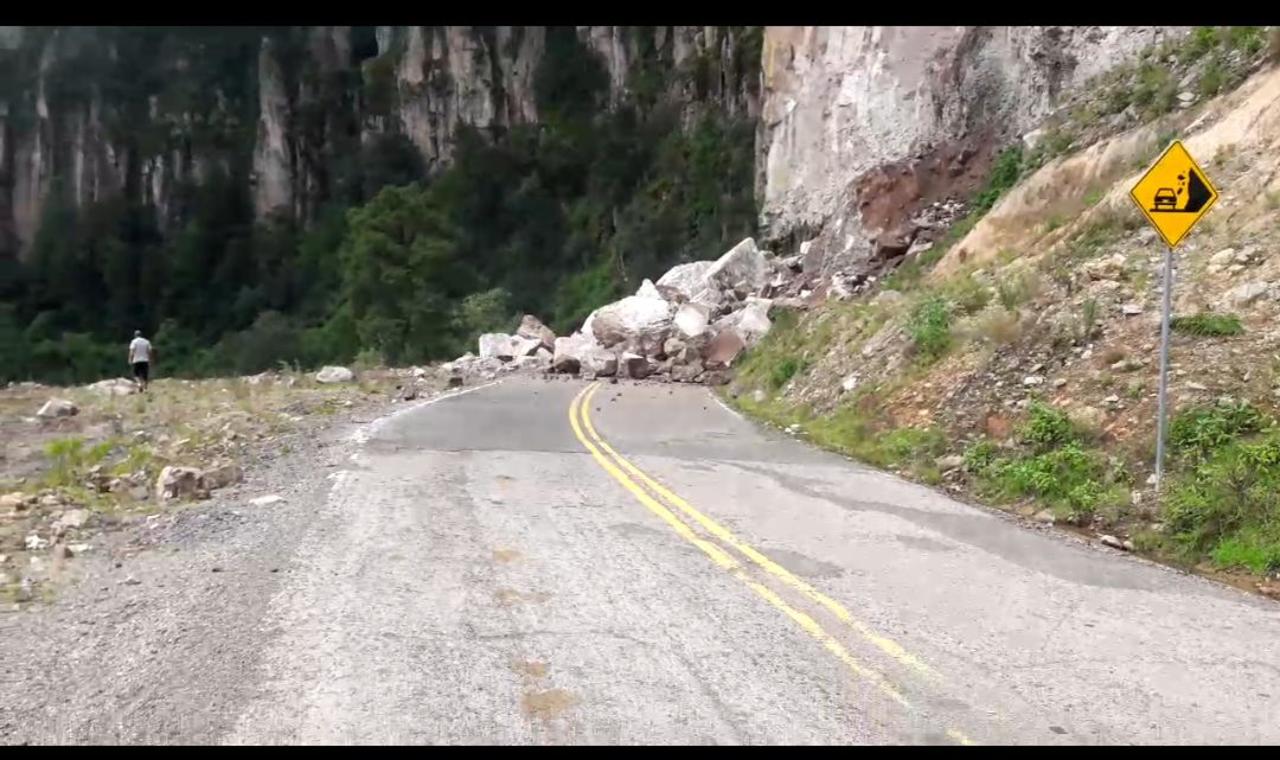 La tarde de este sábado se registró un derrumbe en la carretera libre Durango-Mazatlán, a la altura del kilómetro 165, por lo que la vía se encuentra cerrada.
