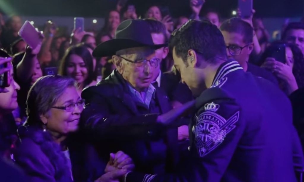 En el emotivo clip, se ve a don Longino darle la bendición al intérprete, mientras su abuela lo toma emocionada de la mano.