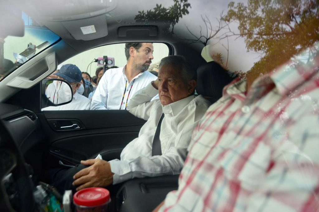 A las 8:15 horas, el presidente López Obrador hizo una seña de avanzar a su equipo de Ayudantía, y al conductor del vehículo, quienes no tuvieron ningún problema para que el mandatario federal ingresara, puesto que los manifestantes solo se limitaron a exigir solución a sus demandas desde lejos.