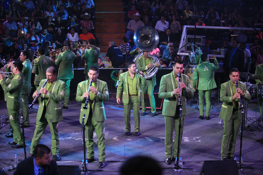 La una de la mañana en el Palenque de la Feria y suena la tambora y metales en el recinto. 15 músicos y dos cantantes vestidos de verde irrumpen en el lugar ante la algarabía de las damas y los gritos de los caballeros.La Arrolladora Banda El Limón se presentó en el Palenque de la Feria Nacional Durango Villista 2014.