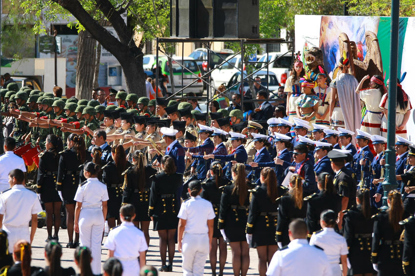 Al rededor de las 10 horas de este martes, con motivo de los festejos del Día de la Bandera, se realizó un acto protocolario en la Plaza IV Centenario, en presencia de autoridades de los tres niveles de gobierno.