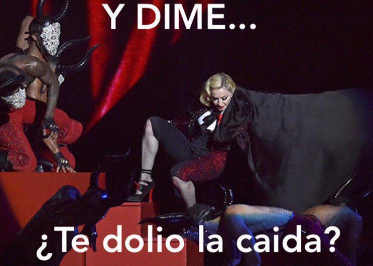 Los usuarios de las redes sociales no perdonaron la aparatosa caída que sufrió Madonna en el escenario de los Brit Awards muentras interpretaba su nuevo tema Living for Love, ya que comenzaron a crear memes para burlarse de la situación.