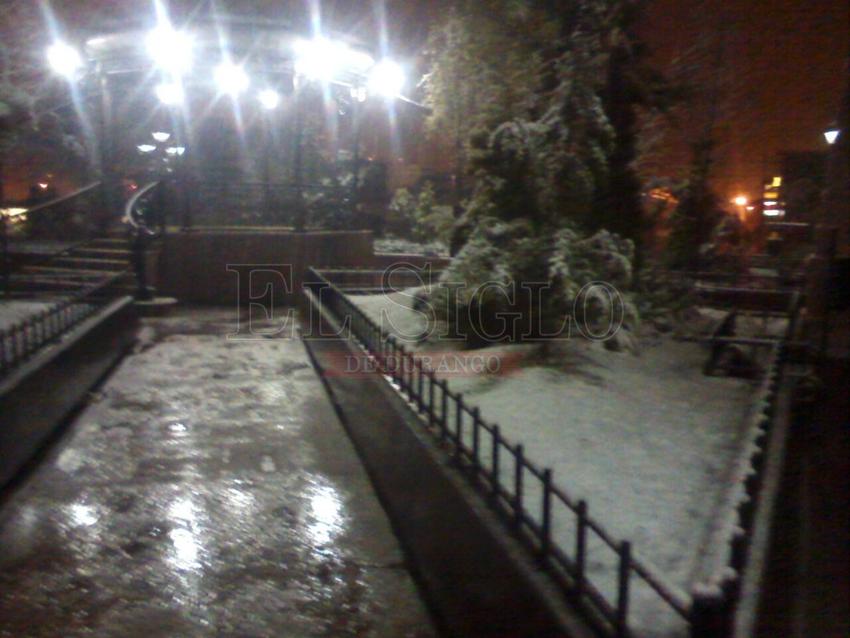 Una fuerte nevada sorprendió ayer por la noche a los habitantes de El Salto, Pueblo Nuevo, tras varias horas de lluvia y aguanieve en la region serrana de ese municipio.