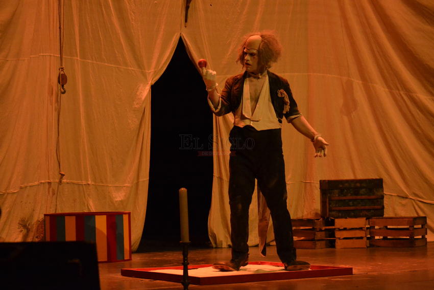Despojó a su cuerpo de siete máscaras que escondían su cara 'muy blanca' para continuar relatando su historia.La puesta en escena Británica formó parte del 11 Festival de Monólogos 'Teatro a una Sola Voz'.