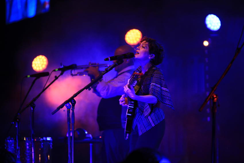 Con vestimenta negra y zapatos de tacón rojos, la cantautora y productora mexicana apareció en la Velaria.Natalia Lafourcade, Siddhartha y Cuca compartieron el escenario de la Velaria.