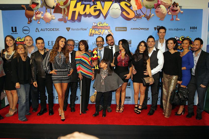 Los artistas que prestaron su voz a los personajes de la película Un gallo con muchos huevos acudieron al estreno.En el sur de la Ciudad de México se llevó a cabo la presentación de la película Un gallo con muchos huevos a la que asistió todo el elenco que prestó su voz a los personajes de la cinta.