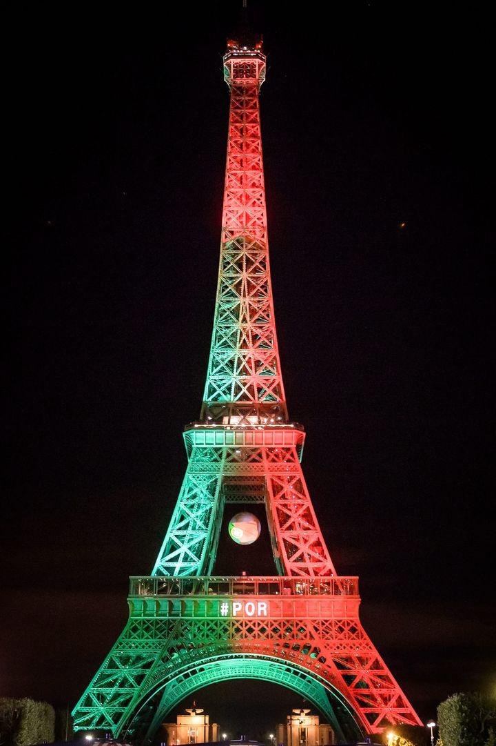 Espectacular vista de la Torre Eiffel luciendo los colores del nuevo campeón de Europa: Portugal.