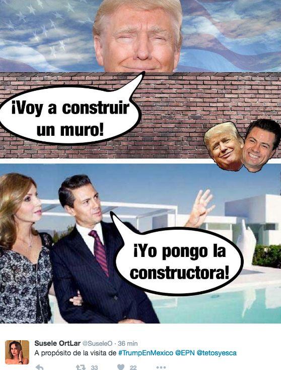 Anunciada de forma sorpresiva el martes, la visita de Donald Trump a México fue recibida en redes sociales con 'memes' que van desde la fina ironía al humor soez, pero que en su inmensa mayoría buscan ridiculizar a ambos políticos.
