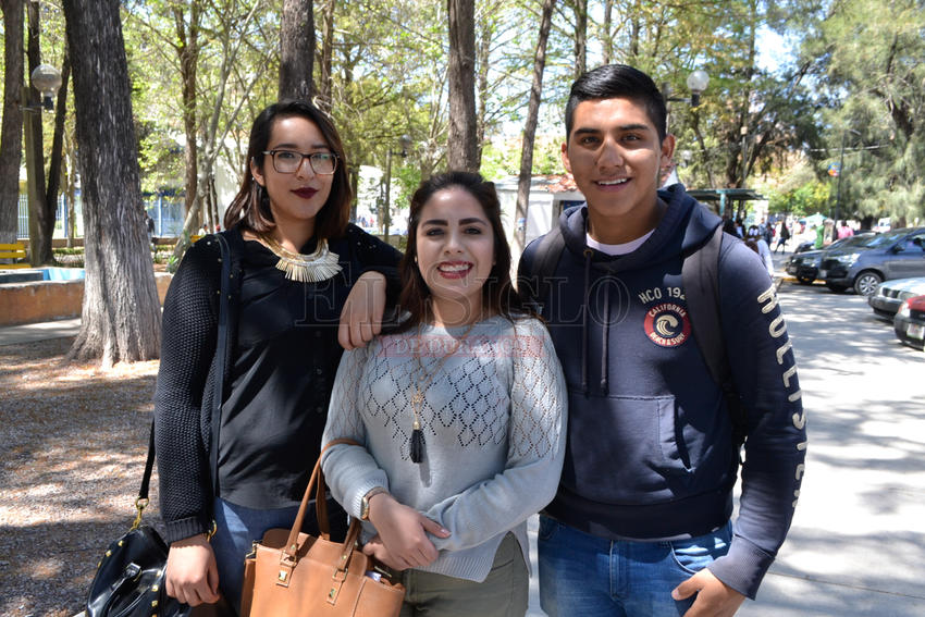 Paulina Victorino, Tania Galaviz y Francisco Guerrero.Jóvenes estudiantes disfrutan de un receso entre clases en FADER y Facultad de Medicina.