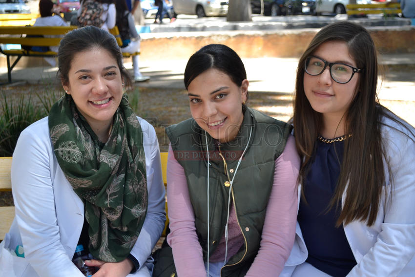 Evelyn, Lizeth y Wendoly.Jóvenes estudiantes disfrutan de un receso entre clases en FADER y Facultad de Medicina.