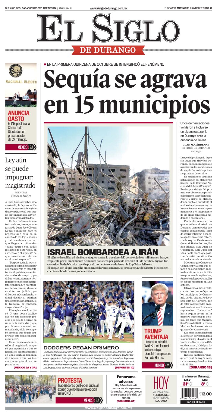 Edición impresa de El Siglo de Durango del sábado 26 de octubre de 2024