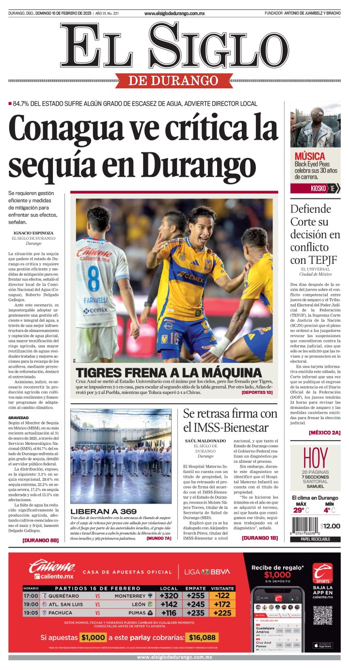 Edición impresa de El Siglo de Durango del domingo 16 de febrero de 2025