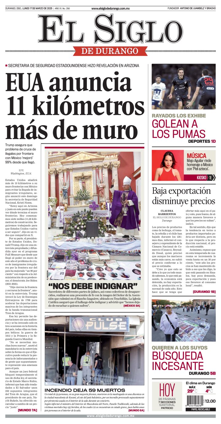 Edición impresa de El Siglo de Durango del lunes 17 de marzo de 2025