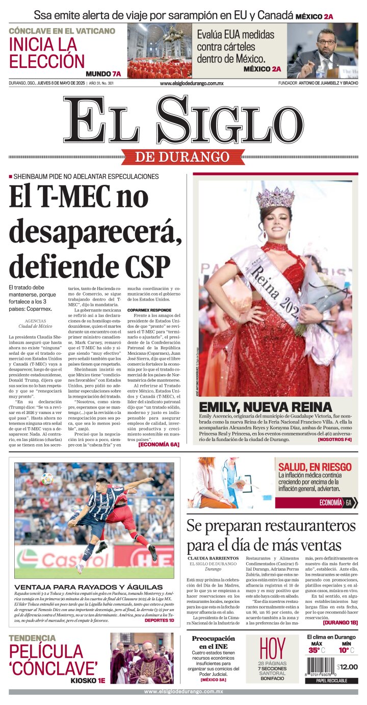 Edición impresa de El Siglo de Durango del jueves 8 de mayo de 2025