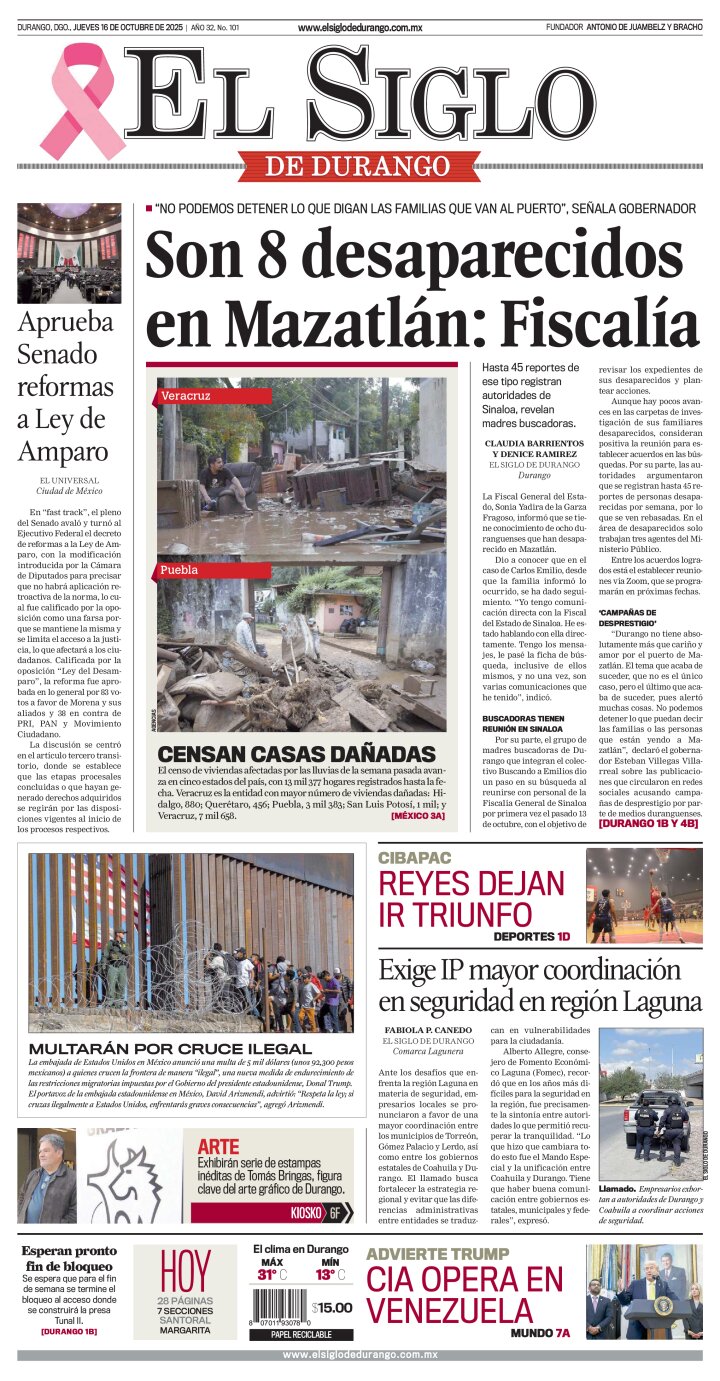 Edición impresa de El Siglo de Durango del jueves 16 de octubre de 2025