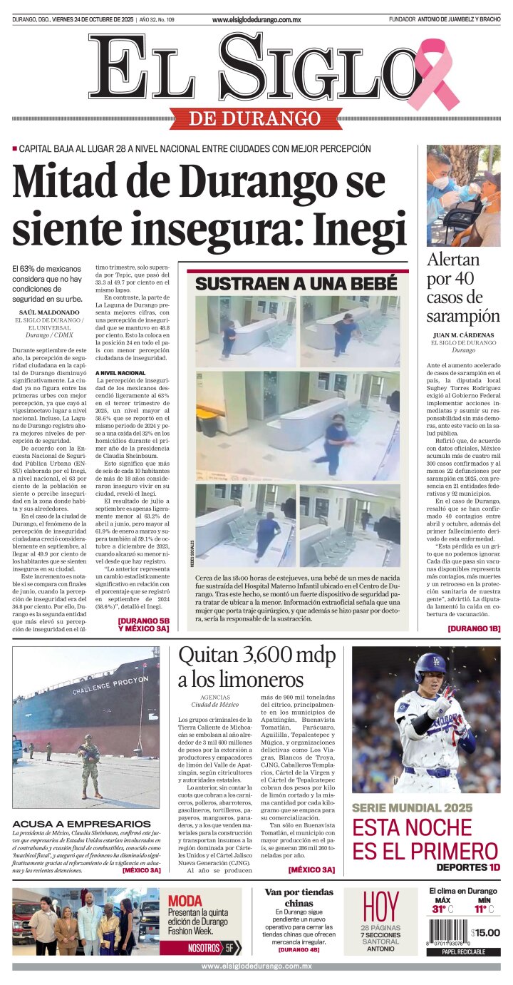 Edición impresa de El Siglo de Durango del viernes 24 de octubre de 2025