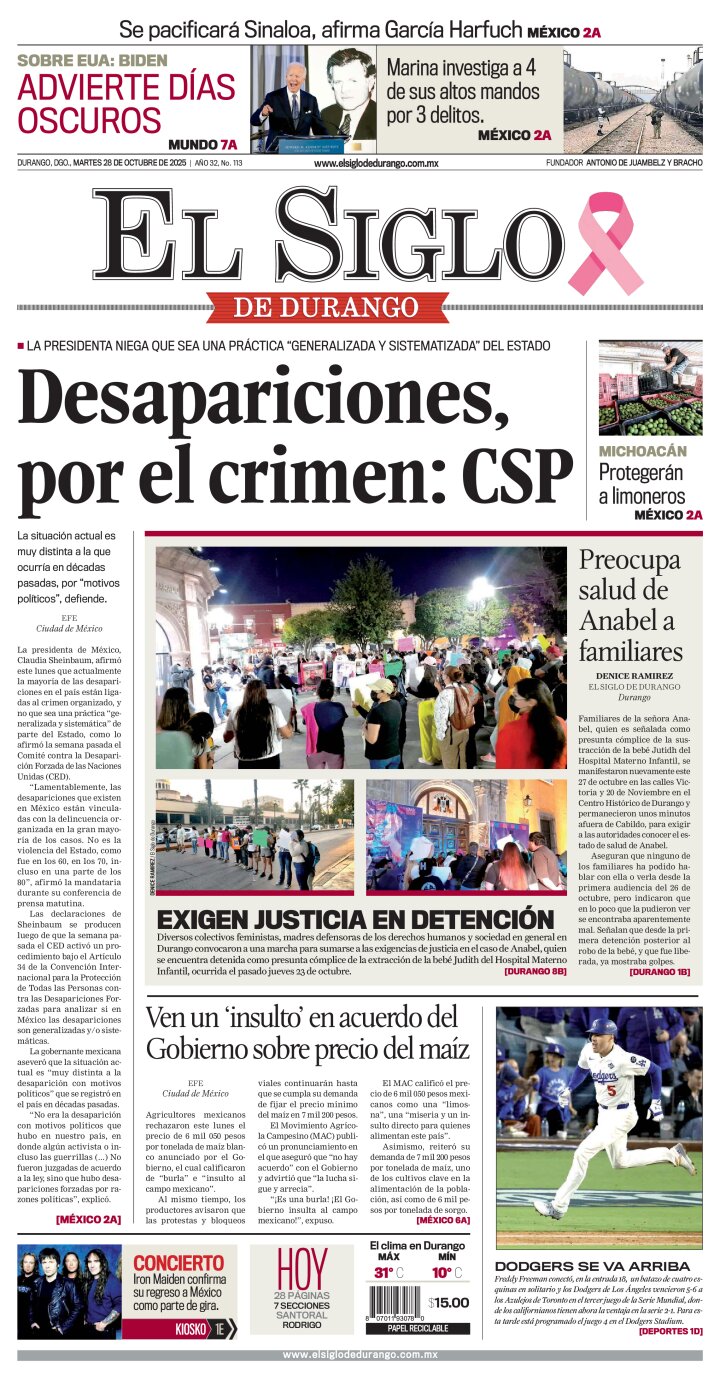 Edición impresa de El Siglo de Durango del martes 28 de octubre de 2025