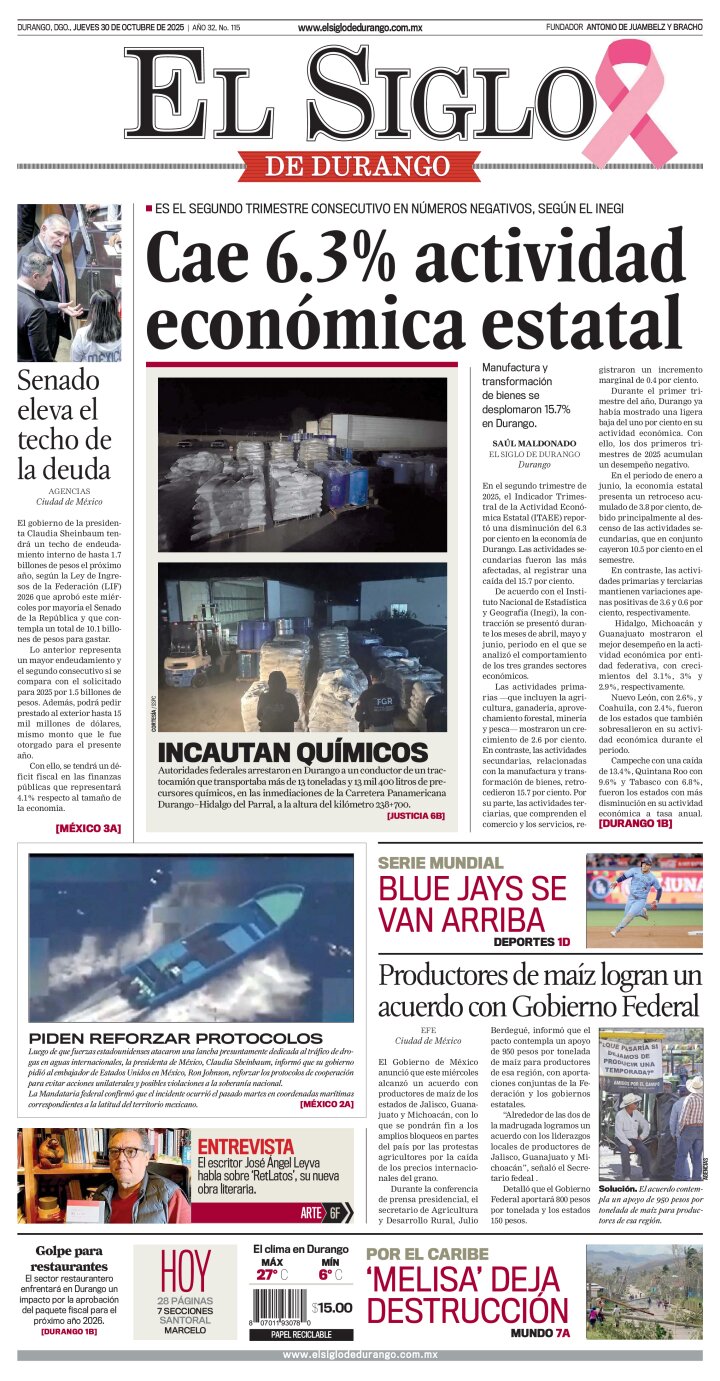 Edición impresa de El Siglo de Durango del jueves 30 de octubre de 2025