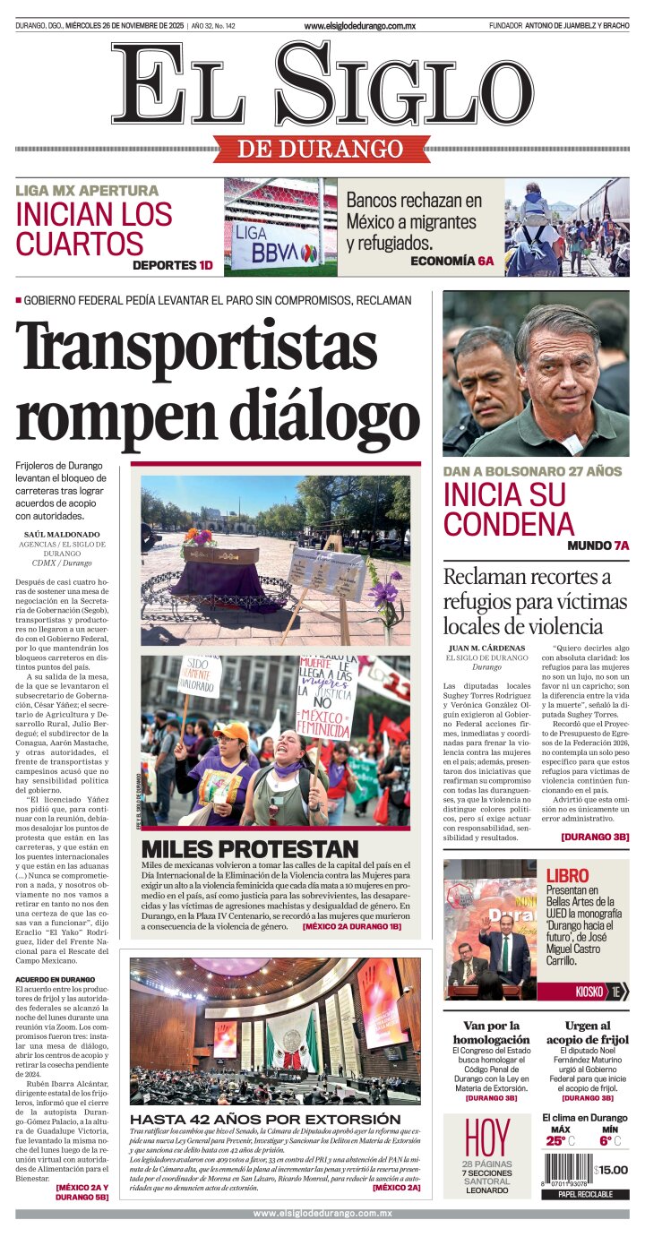 Edición impresa de El Siglo de Durango del miércoles 26 de noviembre de 2025