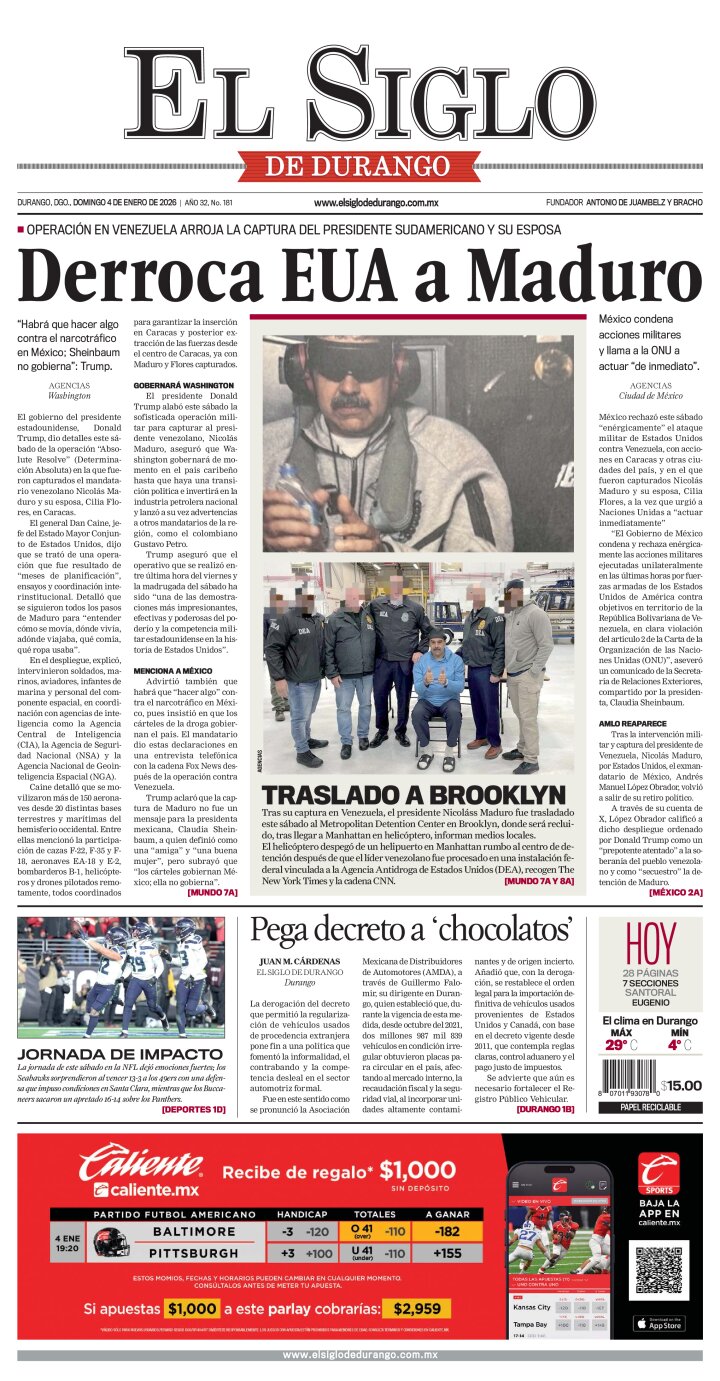 Edición impresa de El Siglo de Durango del domingo 4 de enero de 2026