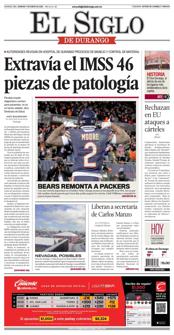 Edición impresa de El Siglo de Durango del domingo 11 de enero de 2026