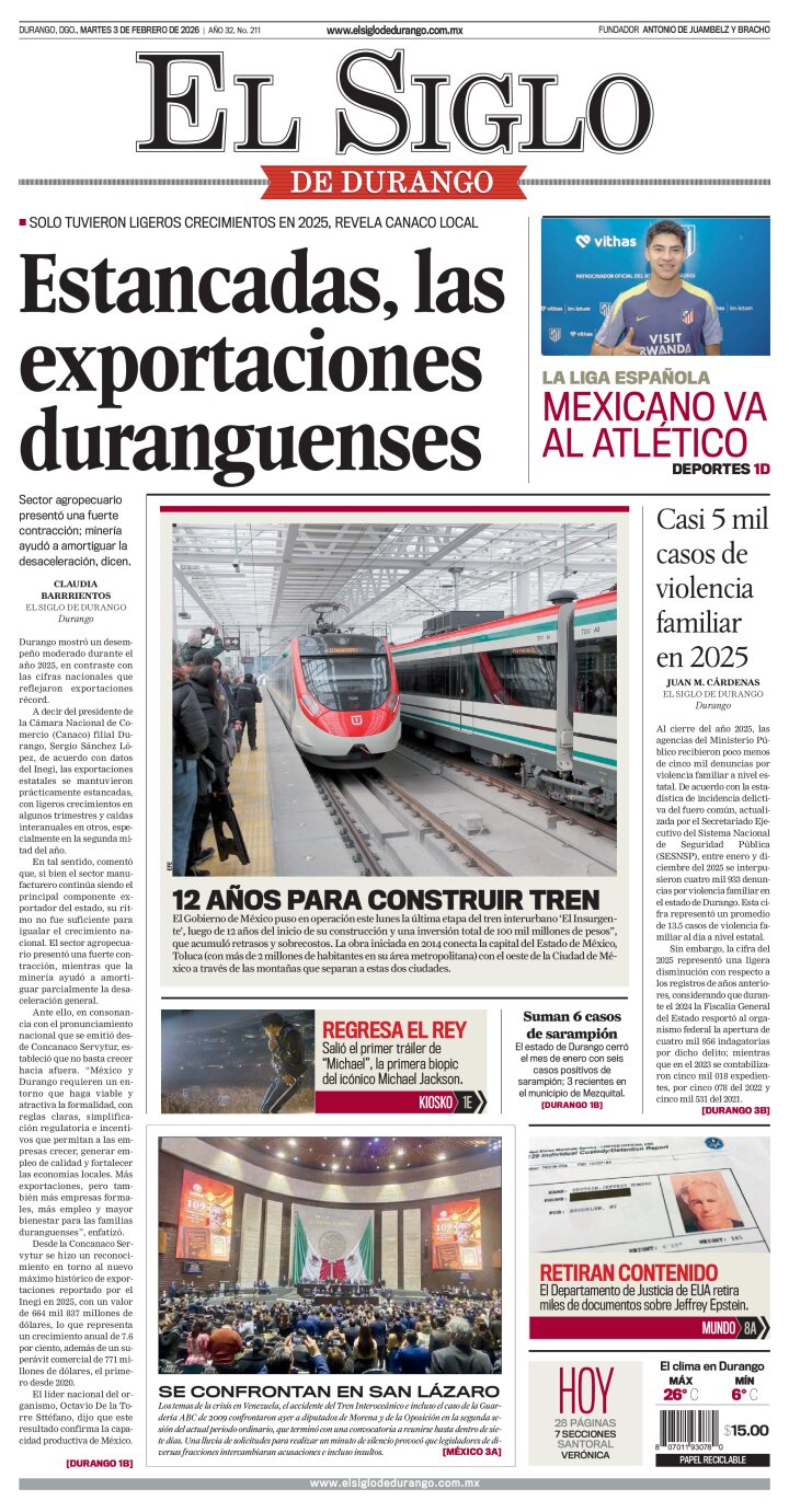 Edición impresa de El Siglo de Durango del martes 3 de febrero de 2026