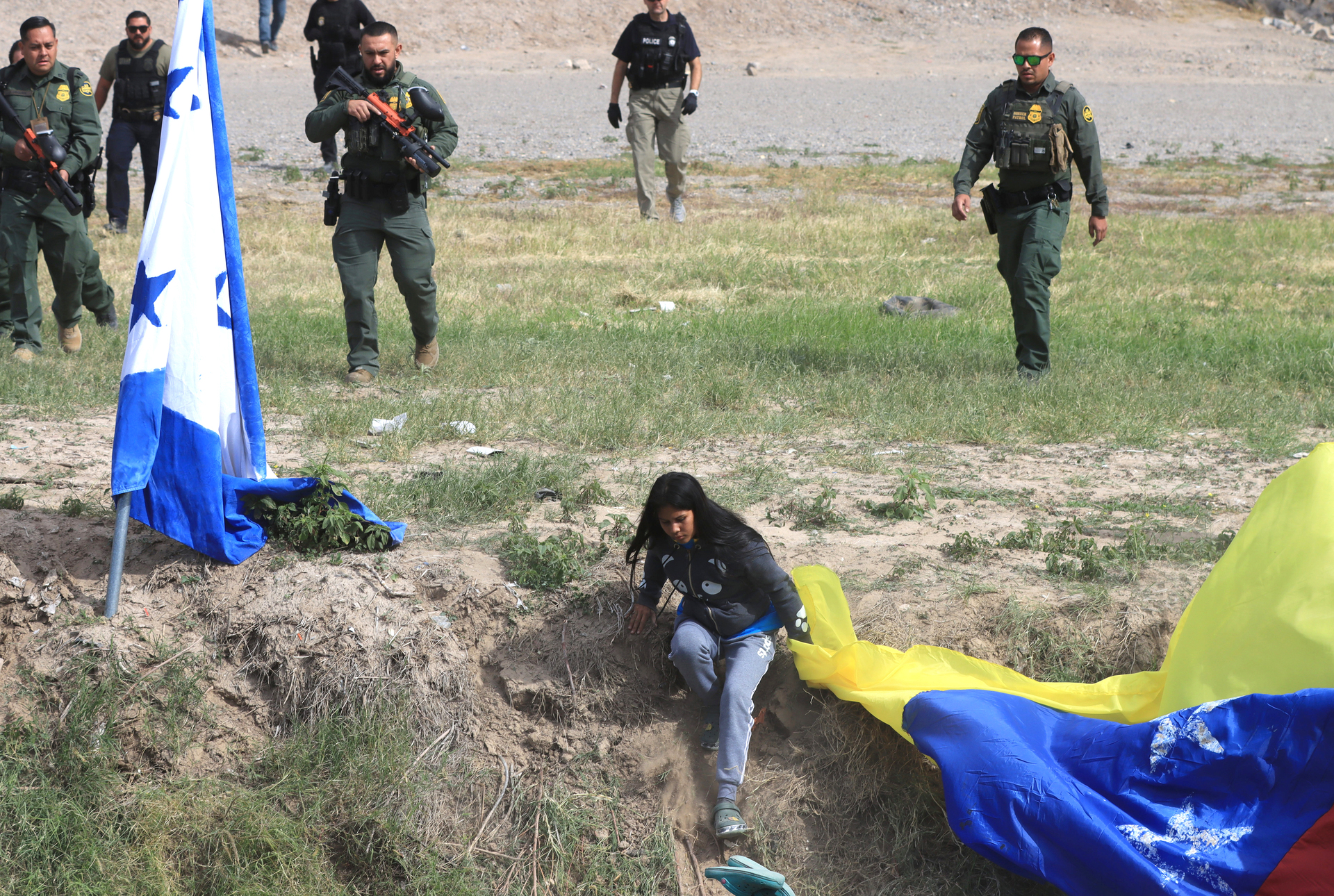 "Agentes de la patrulla fronteriza disparan 'proyectiles', lo que forzó a un grupo de venezolanos que habían entrado a Estados Unidos por el puente internacional de El Paso a volver a México este lunes.