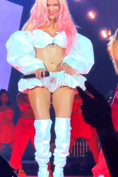 Durante su enérgica presentación, la famosa, quien recientemente asistió a la celebración del cumpleaños de la actriz y cantante Selena Gómez, estaba moviendo sensualmente sus caderas de un lado a otro cuando, al realizar un movimiento brusco con las piernas, el cierre de su pequeño short se abrió.