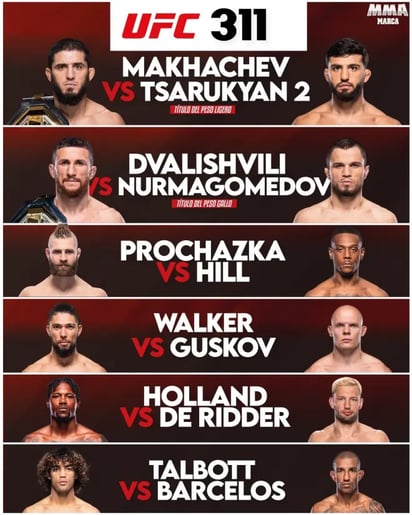 UFC 311: Makhachev vs Tsarukyan 2: Esta es la espectacular cartelera oficial del evento
