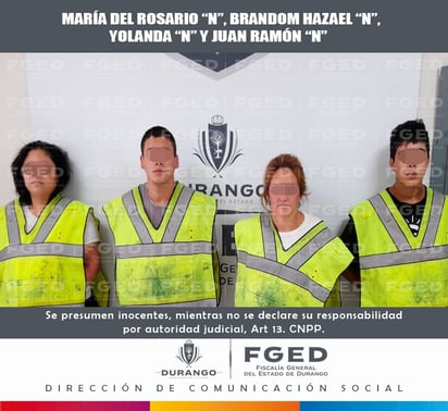 Los cuatro presuntos implicados fueron ingresados al Centro de Readaptación Social Número 1 (Cereso) de Durango, luego de que fueran puestos a disposición de un Juez de Control.