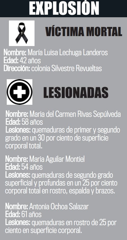 Una de las cocineras que resultó lesionada perdió la batalla contra la muerte, debido a las quemaduras que sufrió en una explosión.