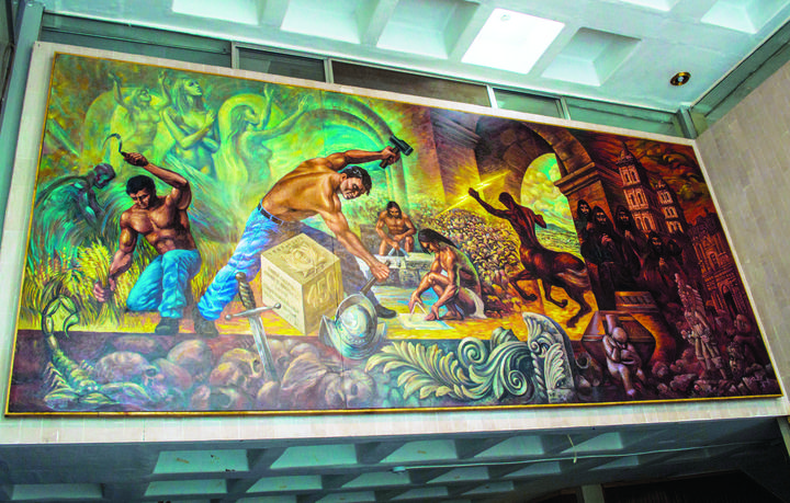 En el mural, se puede observar a un hombre quien con un cincel esculpe y da forma a una piedra que simboliza la perfección, según explicó Luis Gustavo Sandoval.