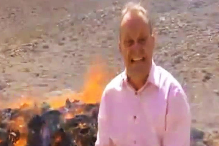 Quentin Sommerville, corresponsal de la citada cadena televisiva, realizaba un reporte durante la quema de drogas pero al parecer inhaló en exceso los enervantes combustión, lo que terminó por jugarle una mala pasada en medio de su trabajo.