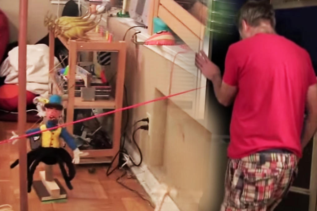 Con mucho tiempo de sobra, bastante creatividad y una fuerte dosis de ingenio, un grupo de amigos crearon un complicadísimo sistema para abrir una puerta, sí, una simple puerta.