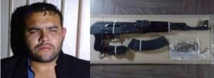 Tras la revisión, al presunto delincuente le fueron le fueron asegurados un arma larga AK-47, un cargador, 10 cartuchos útiles, dos chalecos balísticos, 25 bolsas con marihuana y un teléfono celular.