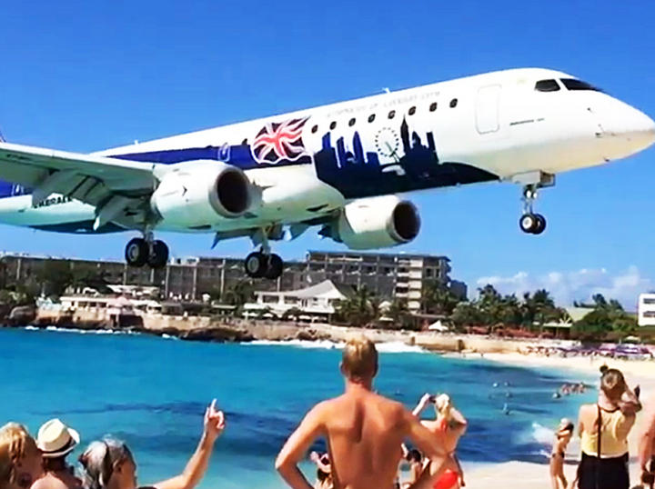 Ubicado en la isla caribeña de Saint Martin, la pista de dicho lugar es tan corta que los pilotos deben ingeniárselas para tocar el asfalto lo antes posible, lo cual implica el tener que bajar con bastante anticipación para perder vuelo a la brevedad posible.