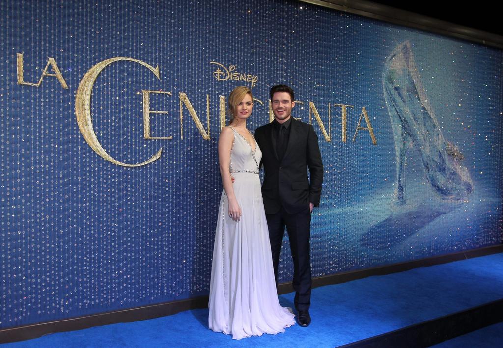 Los actores Lily James y Richard Madden estuvieron en la alfombra azul como parte de la promoción de la nueva producción de Disney, Cenicienta, que se estrenará la próxima semana en la cartelera nacional.