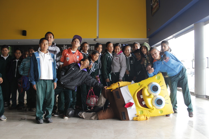 Cientos de niños se "sumergieron" al mundo de 'Bob Esponja', acompañados de ricas palomitas y bebidas, cortesía de Fundación Cinépolis.