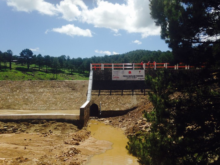 La presa de mampostería construida en la localidad de Empalme Purísima del municipio de Durango beneficiará a 24 familia agrícolas y ganaderas y que tuvo un costo superior a los dos millones 700 mil pesos, misma que ya fue inaugurada por el director de la Comisión Nacional de Zonas Áridas (Conaza).