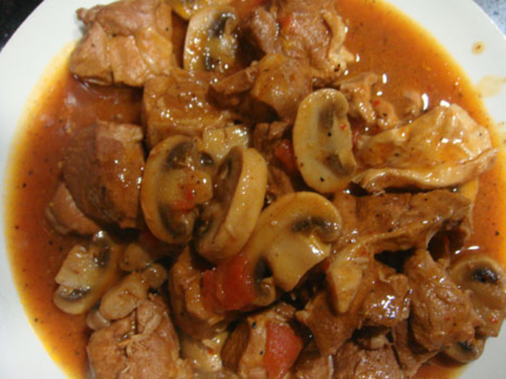 Picamos el tomate y lo incorporamos también a la olla. Añadimos las setas o los champiñones laminadas.
