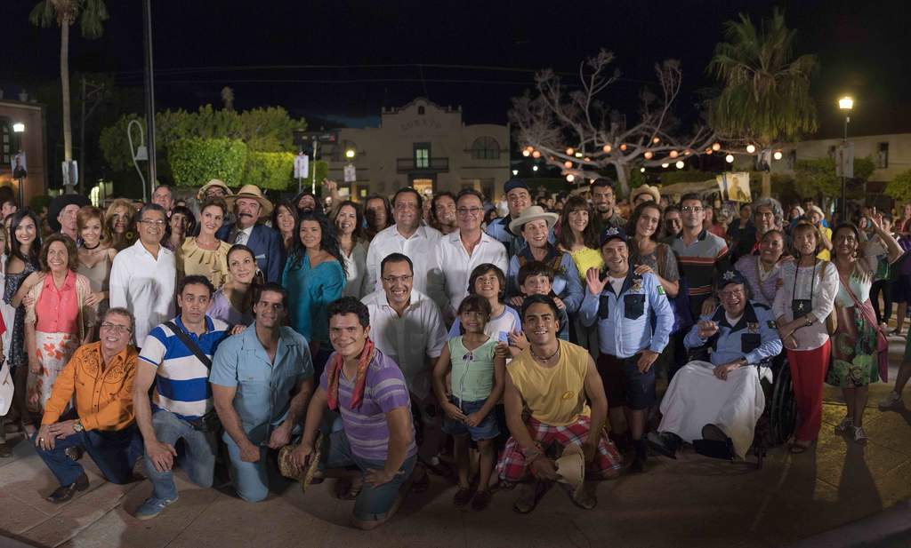 En el marco de este inicio oficial de grabaciones, que se realizó en la plaza principal de Loreto, el director Salvador Garcini montó una escena representativa de la trama de esta historia, y el gobernador fungió como floor mánager de la misma.