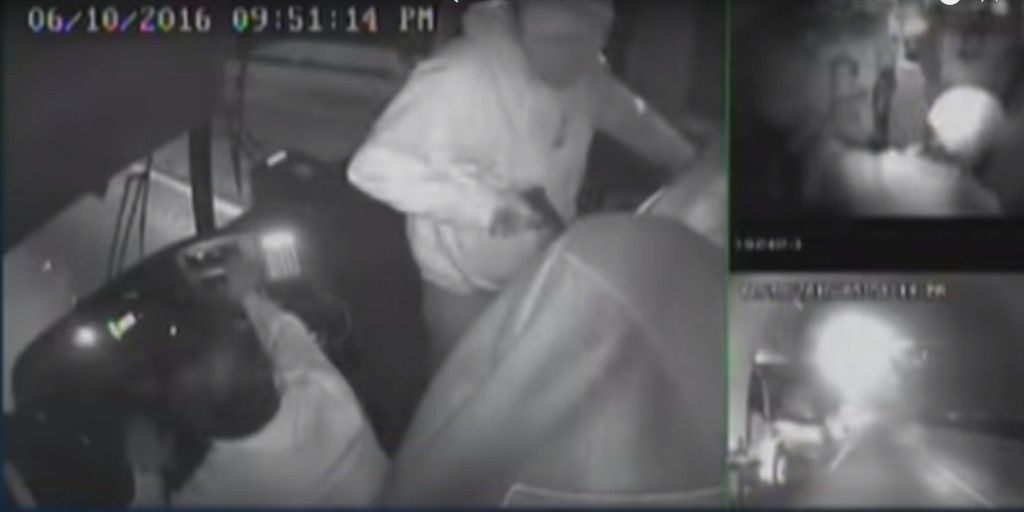 Cerca de las 21:50 horas del 10 de junio de este año, las cámaras captaron cuando un sujeto con una pistola comienza a golpear la ventana del camión de pasajeros y le dice al chofer que abra. Los pasajeros le piden al conductor que no lo haga, quien se va para la parte de atrás del camión, sin embargo el asaltante dispara al vidrio y abre la puerta.