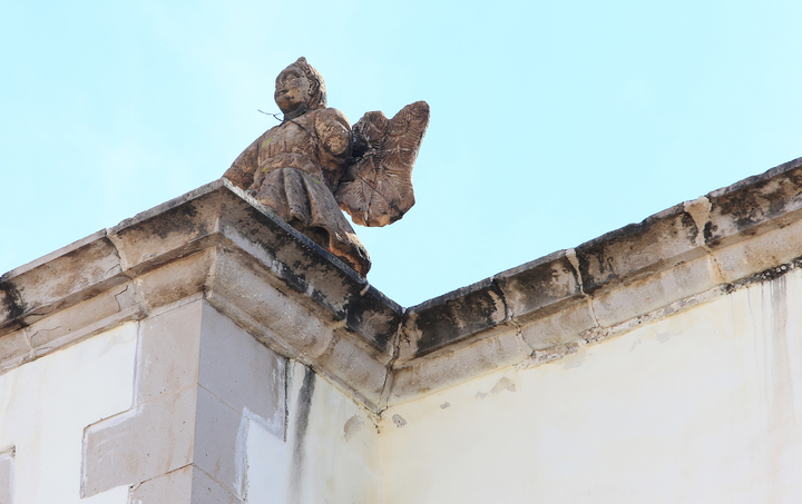 Así, tanto los enjarres laterales, como los elementos de cantera también se han ido dañando poco a poco, en algunos casos erosionándose y en otros acumulando adherencias producto de la condición provocada por el exceso de agua.