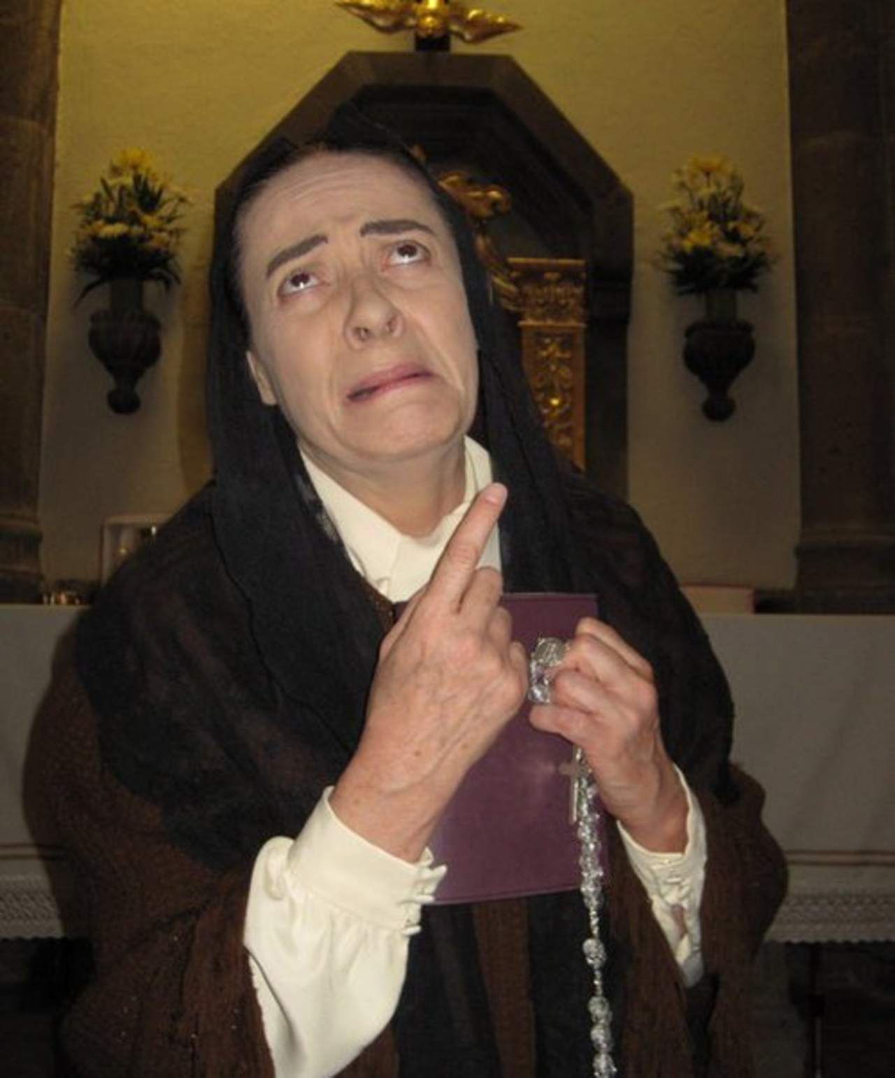 El personaje de mujer católica cuenta que cuando iba para ese país, un hombre grande y fuerte, “con la mirada llena de lascivia y concupiscencia”, le dijo “give me” y “enséñamela”.