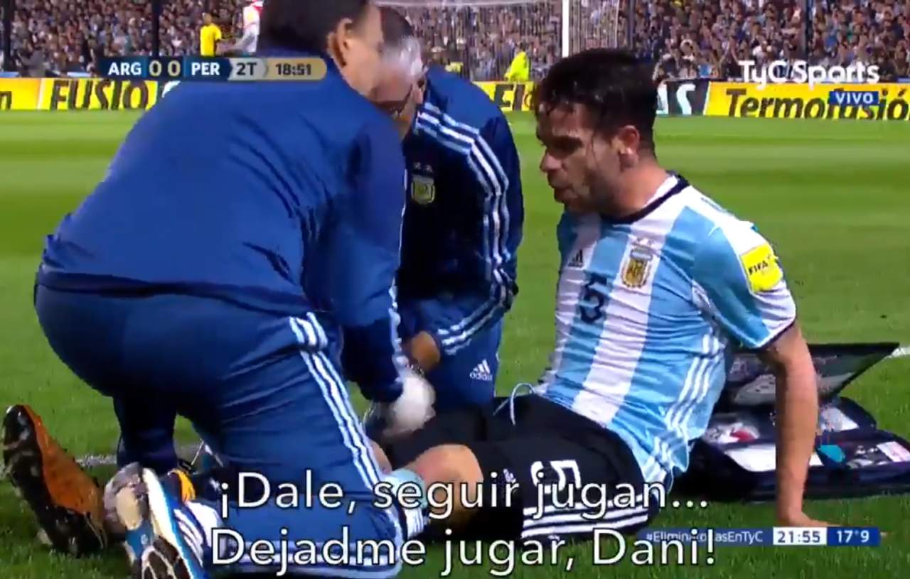 "¡Dejame jugar Dani, vendá dale!", gritó desesperado en el piso, mientras era contenido y Sampaoli buscaba un reemplazo.