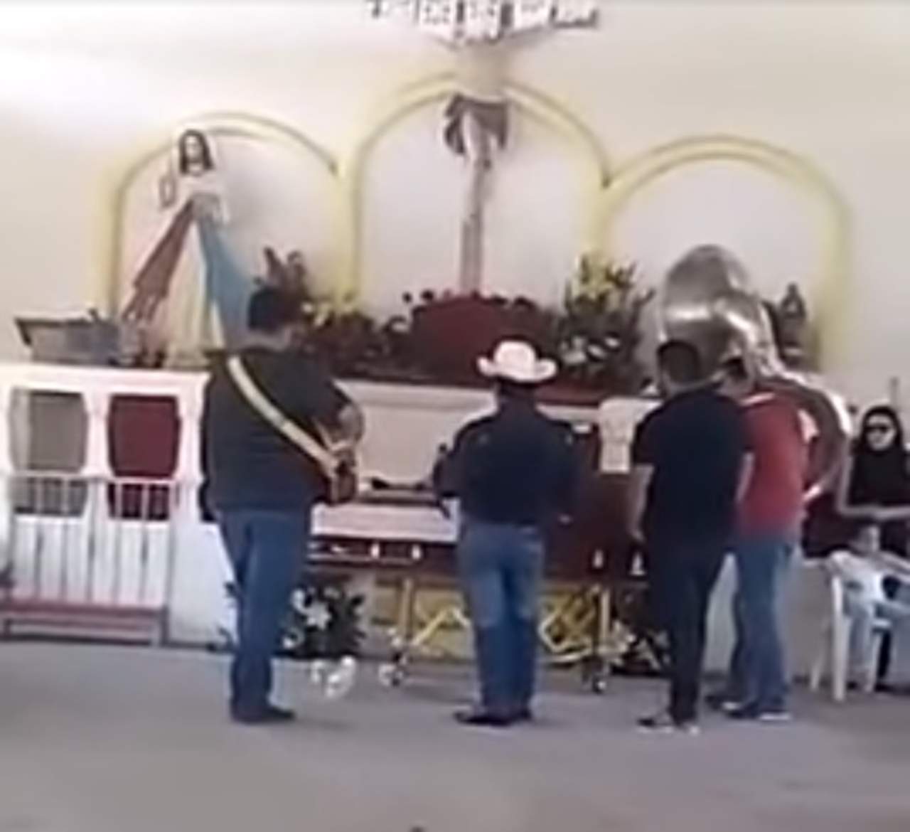 En las imágenes se observa una caravana de vehículos que acompañaban a la carroza que traslada su cuerpo, en medio de música de banda y sin que hubiese presencia, a simple vista, de fuerzas federales, ni policiacas.