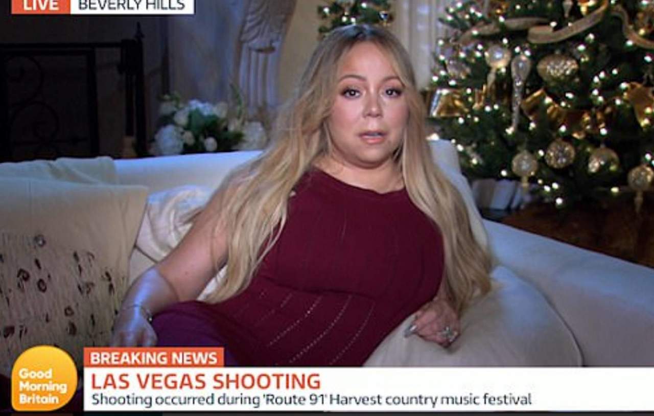 Usando un vestido rojo, reclinada en un sofá y con un árbol de Navidad de fondo, la cantante fue consultada por la reciente balacera acontecida en Las Vegas mientras conversaba con el programa Good Morning Britain.