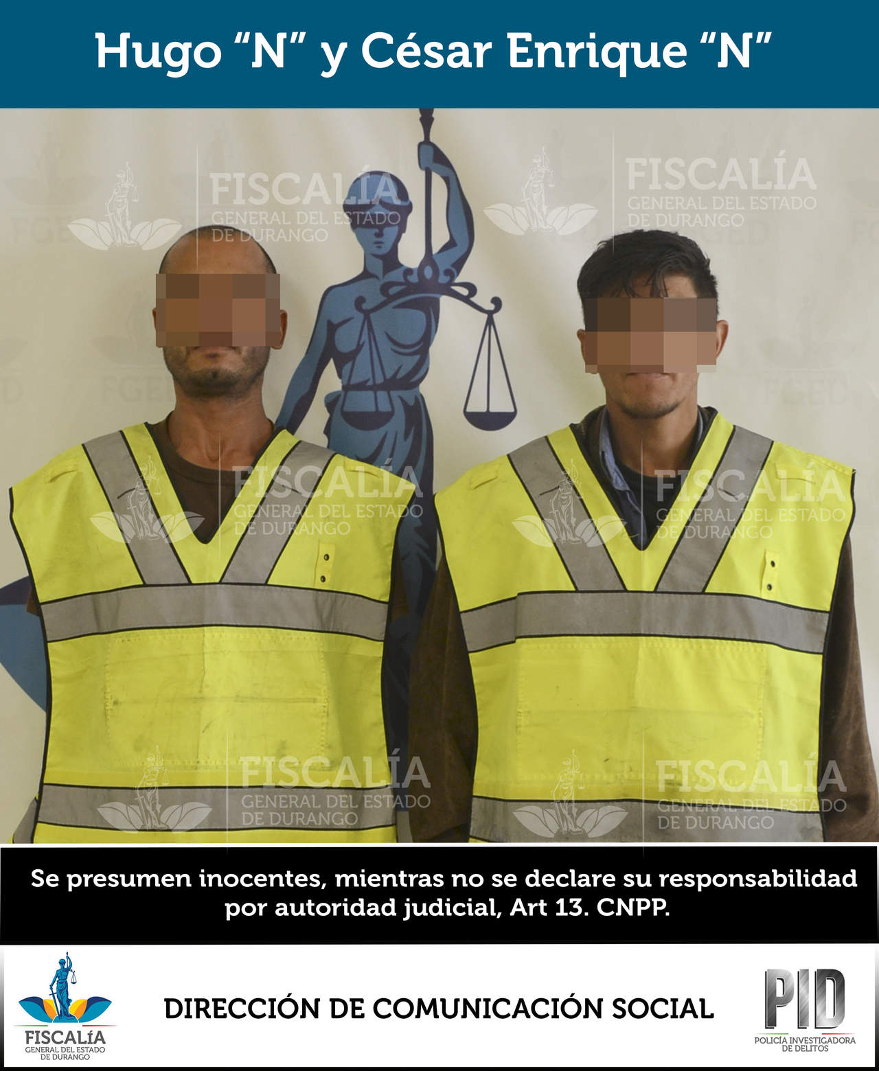La Fiscalía General del Estado de Durango (FGED), a través de elementos pertenecientes a la Policía Investigadora de Delitos (PID), logró la detención de quienes responden a los nombres de Hugo N., y César N., de 38 y 26 años de edad respectivamente, ambos con domicilio en la ciudad de Durango, vinculados por delitos contra la salud.